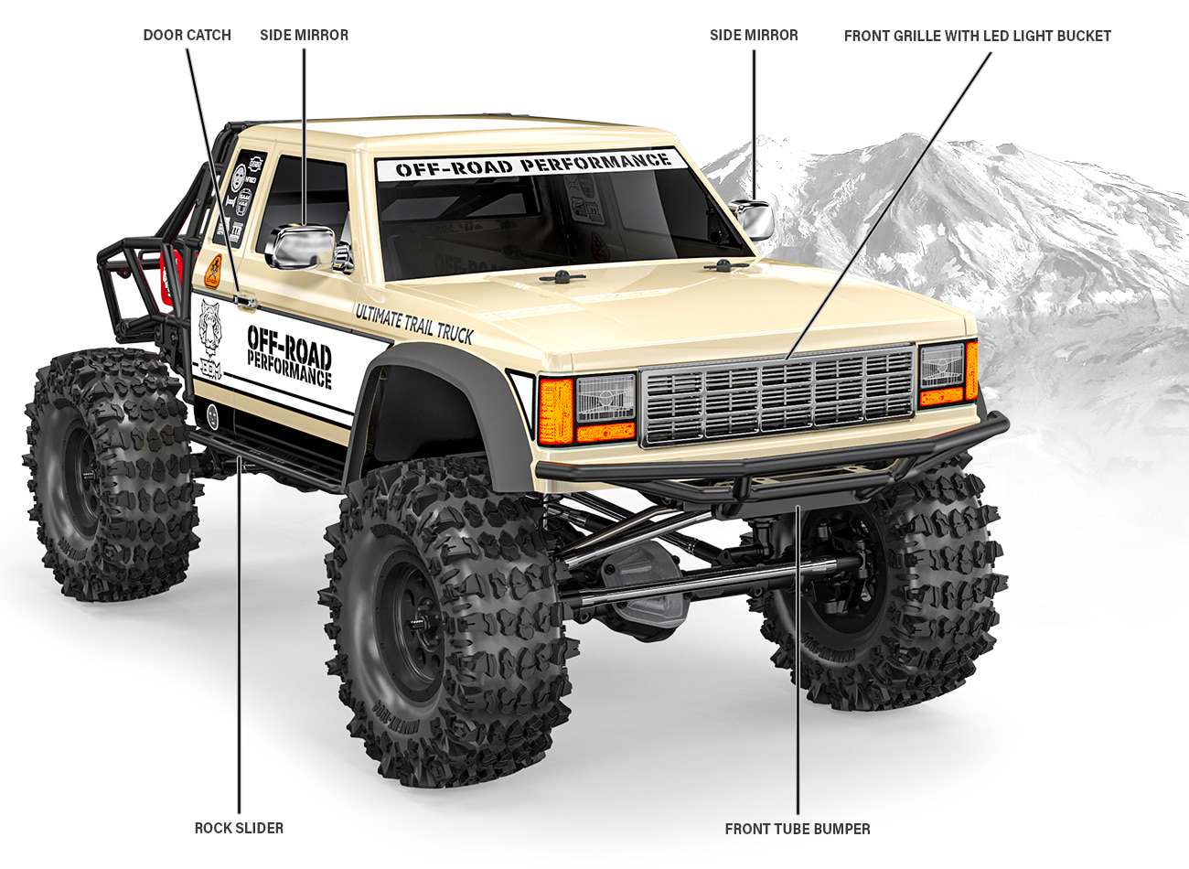 This will increase the tire traction to the front wheel to provide better crawling on high tilt angle rocks and better driving performance when hill climbing and this will help minimize the vehicle's rolling over when climbing.