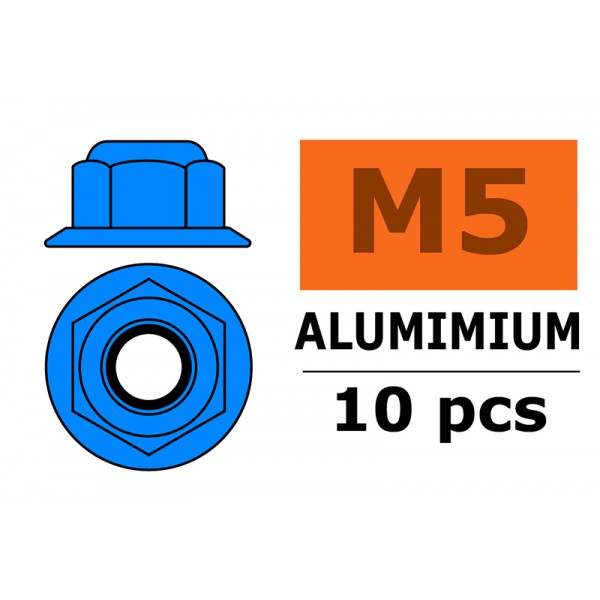 Aluminium Nylstop Nut M5 - Flanged - Blue (10pcs)