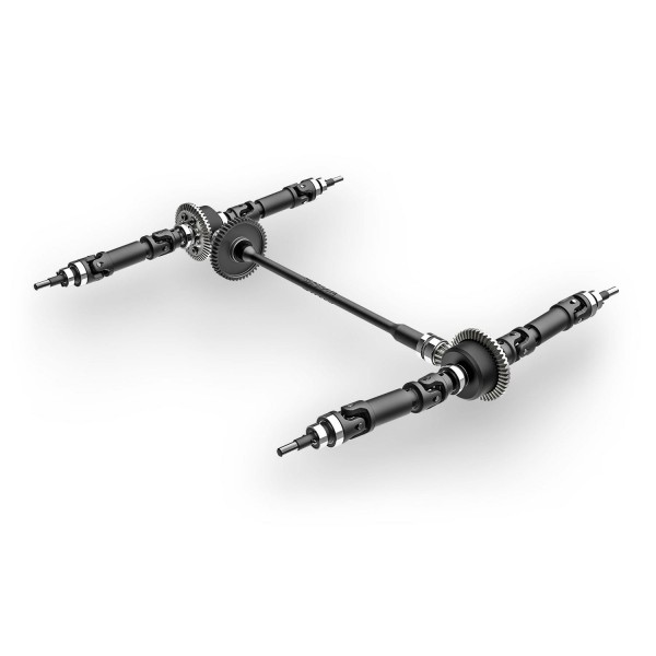 Rugged impact-absorbing bumpers in the front and rear protect the chassis. The fornt bumper provide a high approach angle that allows Mini Maxx to climb up and over obstacle with ease. The rear bumper accomodates the optional wheelie bar.