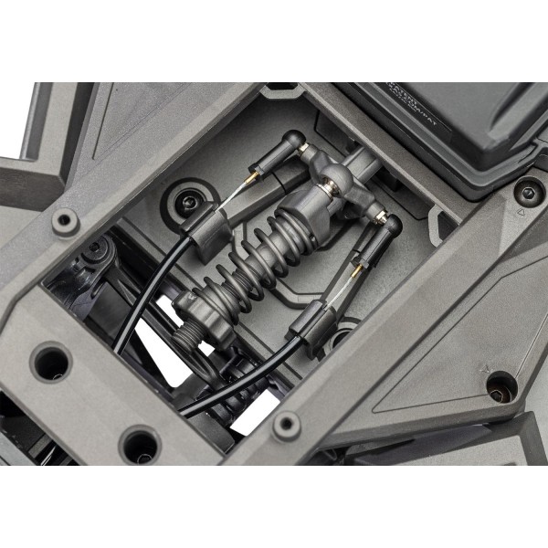 With 30+ volts of brushless power going only to the rear wheels, the Pro Scale Sand Car needs a radically strong driveline. Inside the massively reinforced case, huge module 1.5 wide-face transmission gears feed uninterrupted power to the wheels. A beefed-up X-Maxx differential with larger output cups engages steel driveshafts to form the toughest driveline ever outfitted to a Traxxas vehicle.
