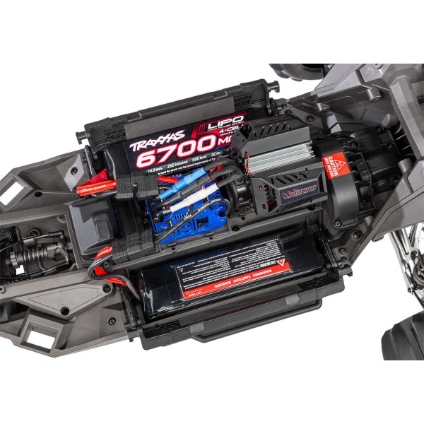 Traxxas recommends dual 4-Cell, 6700 mAh Power Cell LiPo batteries (part 2890X) or the Dual 4s Completer Pack (Part 2997).