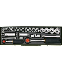 Coffret douilles auto avec cliquet 1/2" et 1/4" de 6 à 32 mm, 27 pièc