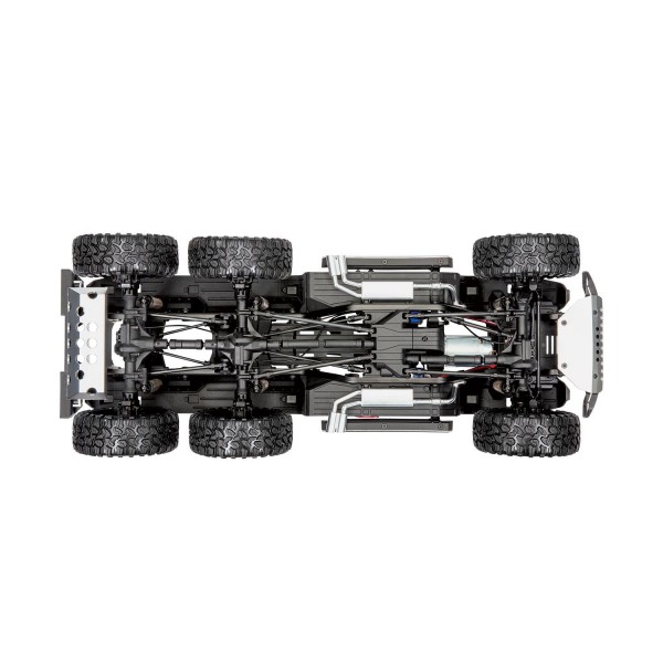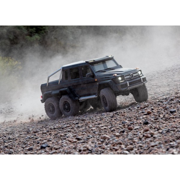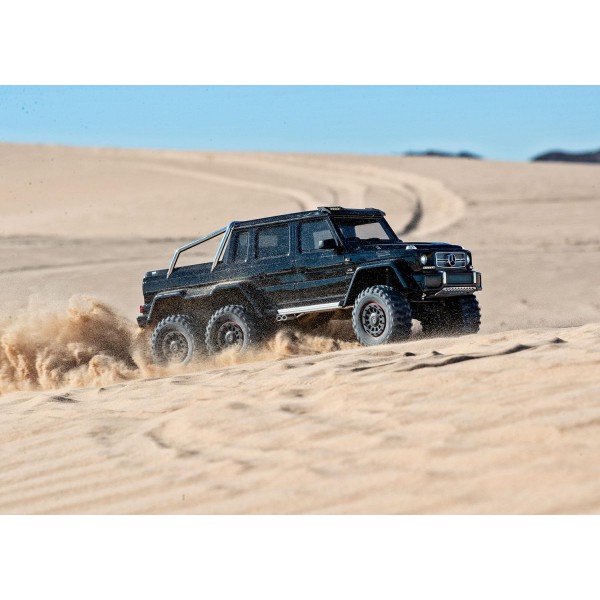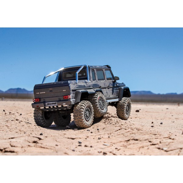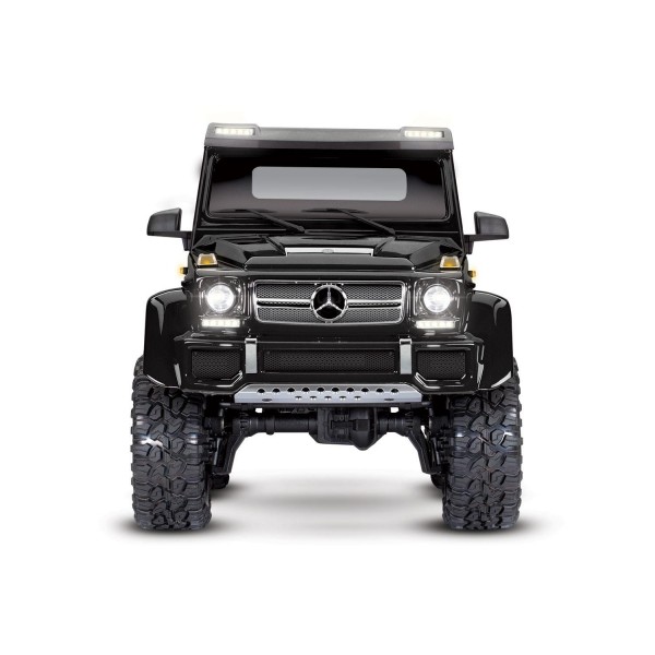 Le Mercedes-Benz G 63 AMG 6x6 est né d'une vision du plus gros et du plus robuste des véhicules tout-terrain jamais produits. Traxxas a capturé l'esprit et l'approche sans compromis du Mercedes-Benz G 63 AMG 6x6 avec une réplique détaillée sous licence, bâtie sur la plateforme éprouvée TRX-6. 6 roues motrices, trois différentiels T-Lock à blocage commandé à distance, essieux "Portal", transmission à deux rapports, 6 amortisseurs aluminium à longue course, et une carrosserie incroyablement exacte avec un éclairage à LED puissant, tout ceci en fait le plus capable et le plus avancé des crawlers RC à avoir attaqué les pistes.