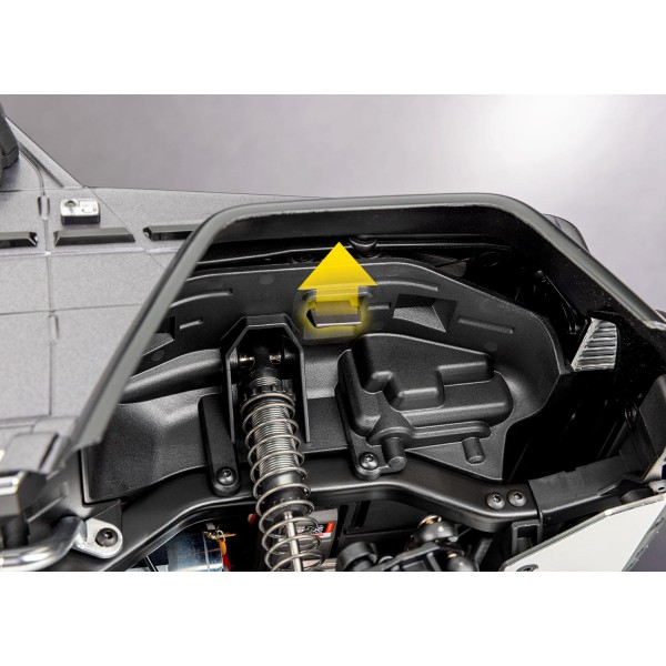 Nouveau sur la Mercedes-Benz G 63 AMG 6x6, le montage de la carrosserie sans clip associe des lignes fluides et épurées à un verrouillage sûr et pratique. Les loquets cachés du TRX-6 Mercedes-Benz G 63 AMG tiennent fermement sur la piste, quelle que soit l'intensité de l'action, mais se libèrent en quelques secondes pour accéder au châssis.