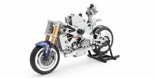 Équipé d'un bras oscillant asymétrique et d'un mono-amortisseur à friction, le modèle dispose également d'un système d'entraînement par chaîne réaliste utilisant une mini-chaîne, tout comme une véritable moto.