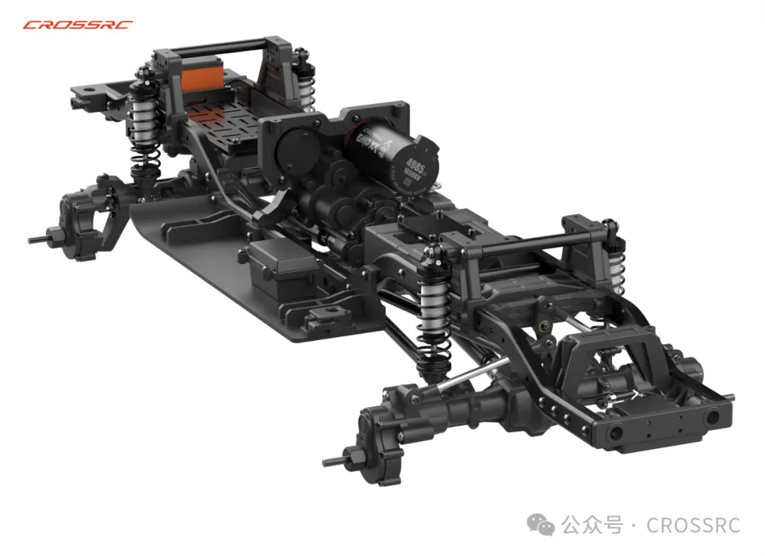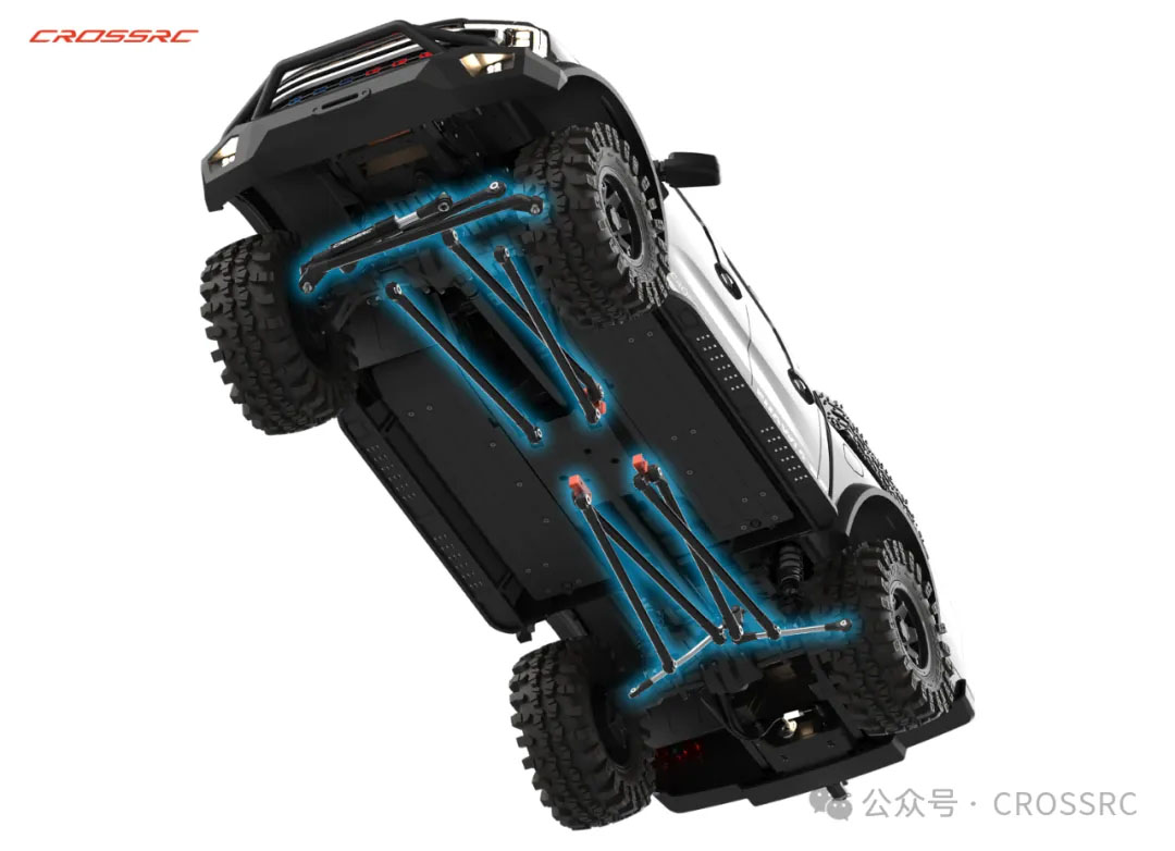3, combinaison solide de pont de porte à passage inversé, angle de braquage maximal de 5 degrés selon Ackerman, angle de braquage principal vers l'intérieur de 8 degrés, inclinaison maximale vers l'arrière de 8 degrés. Le gouvernail arrière offre une meilleure trace, ce qui apporte une plus grande stabilité et une maniabilité accrue pour les croisements à grande vitesse. Grâce à l'angle supérieur de l'arbre d'entrée et à l'angle spécial du point de suspension, la transmission est fluide et l'effet de l'arbre est réduit au minimum. Équipé de la première bielle arrière équilibrée de CROSSRC sur ce modèle, le contrôle est plus précis et plus délicat.