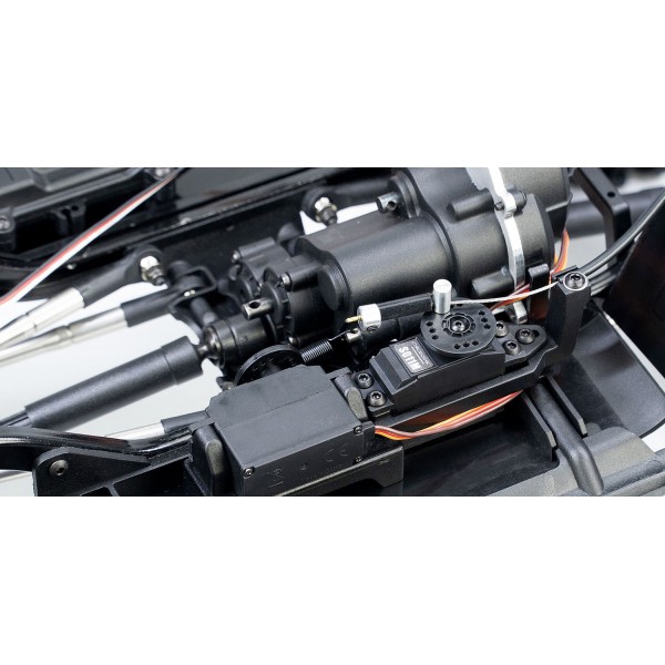 - The entire vehicle adopts a 7.4V high-voltage circuit, full-range servo shifting and differential lock control mechanism, customized 4S 880 ESC from Hobbywing, and a linear high-power 560 carbon brush motor.