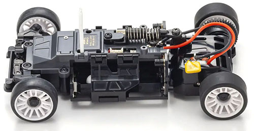The car is powered by four AAA alkaline or rechargeable nickel-metal hydride batteries. The batteries are mounted lower than the MR-03, lowering the center of gravity of the entire chassis to deliver improved cornering stability and straight-line handling.