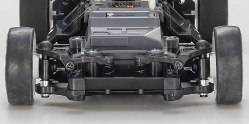 Flexibility of the T-bar rear suspension plate that holds the entire rear pod, including the motor and rear axle, produces excellent suspension effect. Optional parts are also available in FRP and carbon.