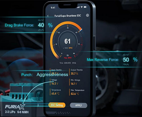 Forget bulky programming boxes or cards. With wireless connectivity, you can easily adjust your ESC settings directly from your smartphone, saving you the cost of extra equipment.